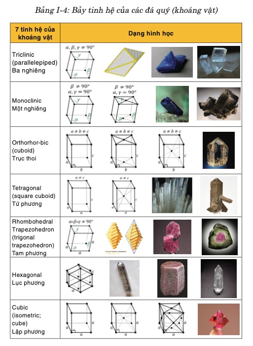 I/ ĐÁ QUÝ ĐƯỢC KẾT CỨNG THEO 7 TINH HỆ VÀ TRẠNG THÁI THUỶ TINH.